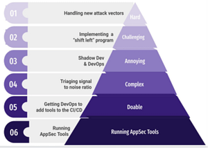 However, it’s not as easy as snapping your fingers and watching DevSecOps take control of the process. There are several challenges that any successful DevSecOps program must address when trying to secure today’s software supply chain. The “pyramid of pain” includes trivial challenges, such as running appsec tools, and very difficult challenges, such as protecting against new attack vectors.