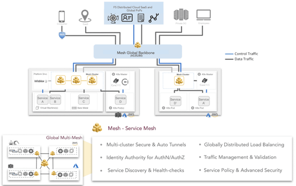 The F5® Distributed Cloud Mesh Service Mesh is a centrally managed global proxy and load balancer with service discovery, service health checking, application micro-segmentation and application policies providing the most advanced implementation of an edge load balancer with ingress/ egress to any network service.