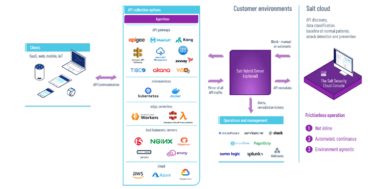 SALT Security is a SaaS solution, which provides an end-to-end solution in the worlds of API Security. The solution provides a systemic view of all the open APIs in the organization, mapping the client’s attack area, identifying attackers at a very early stage of their research, and the possibility to block the attacks and provide ways to help improve API SECURITY.
